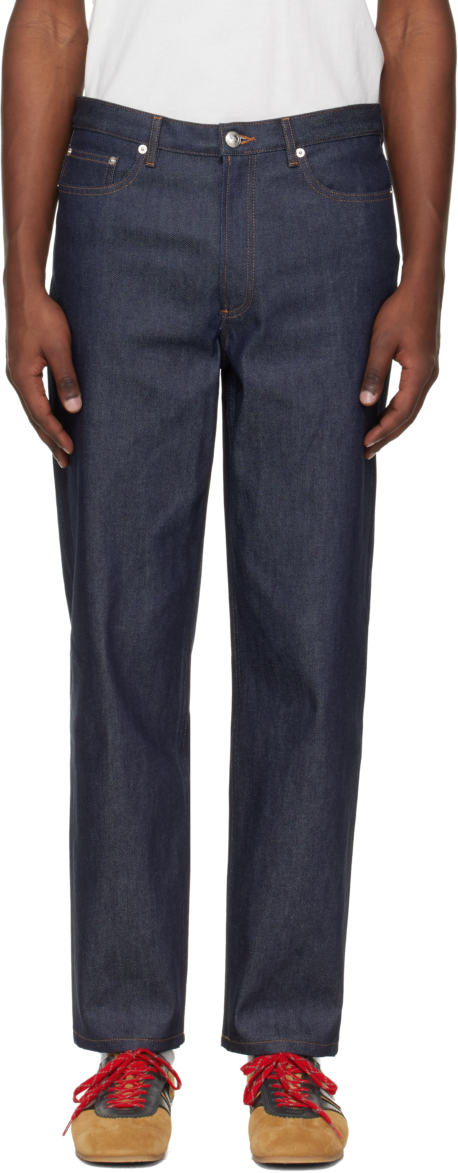 Indigo remains the most versatile denim colorway, pairing seamlessly with everything from white tees and leather jackets to oxford shirts and workwear silhouettes. The Martin's neutrality makes it a wardrobe anchor rather than a seasonal statement. At $174.25 after applying code SS2026 at checkout—a 15% reduction from the standard $205 retail price—this represents fair value for a pair built to outlast trends. A.P.C. denim typically holds its price across most retailers, making any discount worth noting. Sizing runs true to tag; A.P.C. historically recommend sizing down one to account for the rigid raw denim before the first wash.